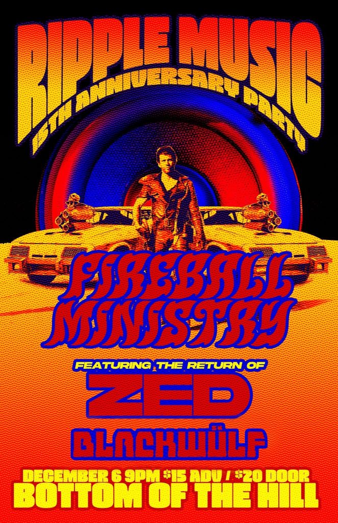 For over a decade, Ripple Music has been a heavyweight powerhouse within the international heavy rock scene, releasing pure sonic gems from legendary acts such as Hermano, The Obsessed and Scott “Wino Weinrich” to underground pillars Wo Fat, Thunder Horse, Valley of the Sun, Steak and more. On December 6th, expect a full-blown earthquake at San Francisco’s Bottom of the Hill, as the Bay Area label will be bringing the heavy artillery with the raw power of Fireball Ministry, the desert-rock grooves of ZED, and the timeless swagger of Blackwülf.